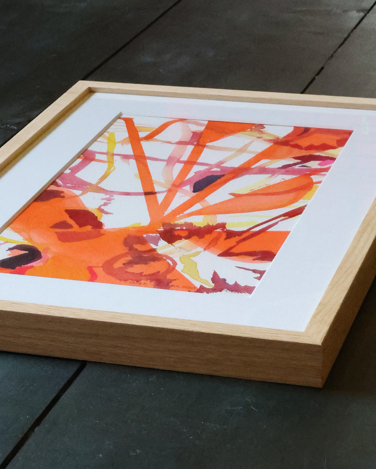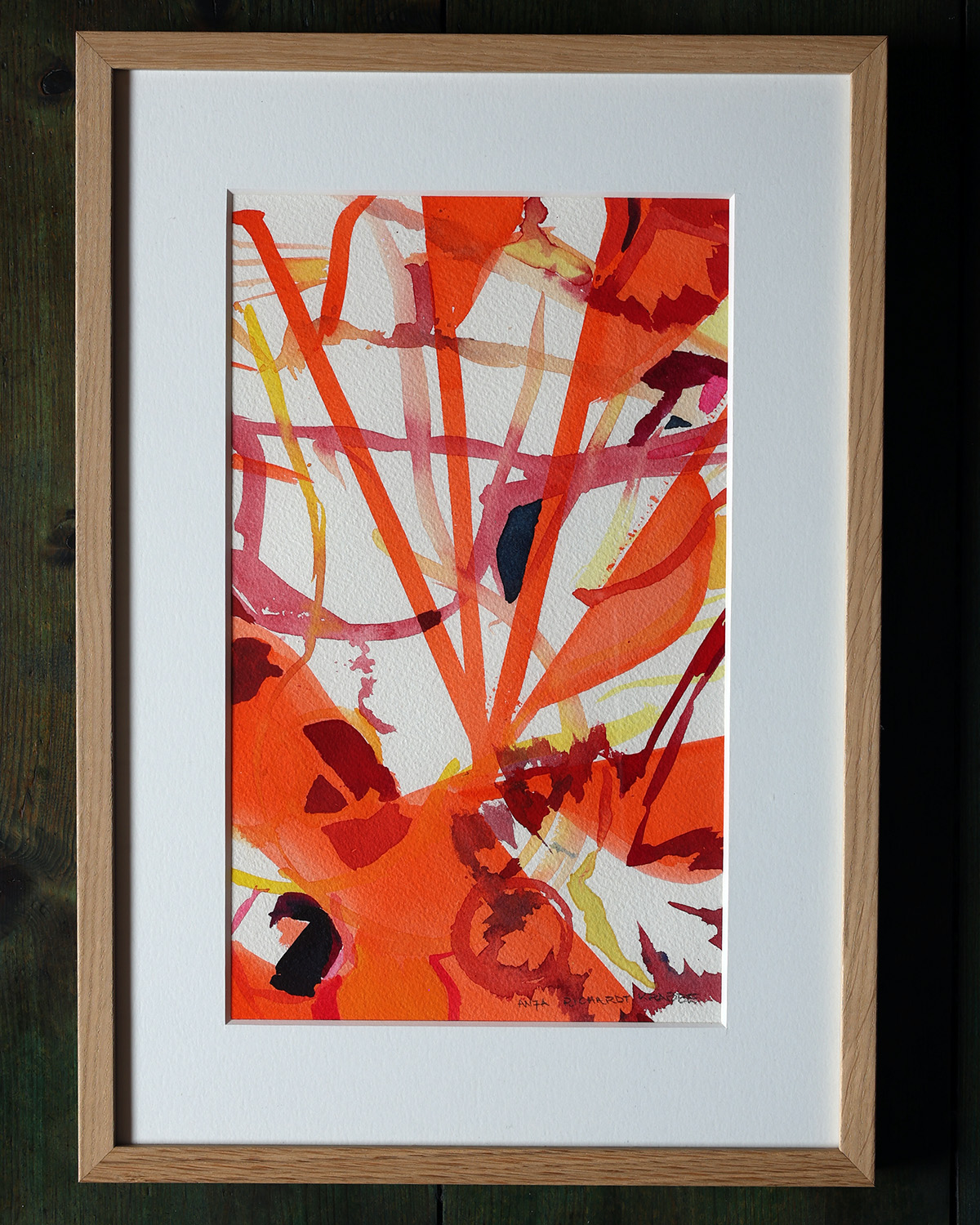 Original skitse fra arbejdet med kunstværk til Nobel diplomet 2023, indrammet i eg med passepartout. Format 19,4x33cm (29,7×42 cm med passepartout).