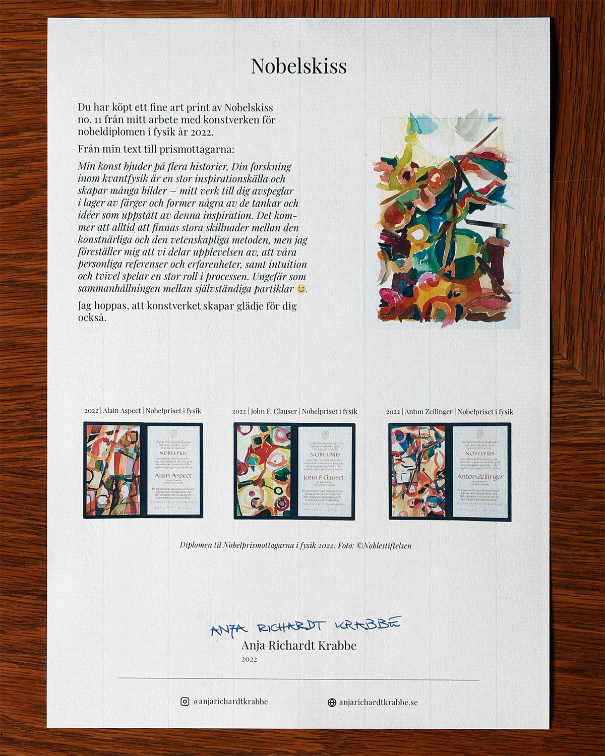 Fine art print av skiss från arbetet med konstverk till diplomen för nobelpristagarna i fysik 2022.