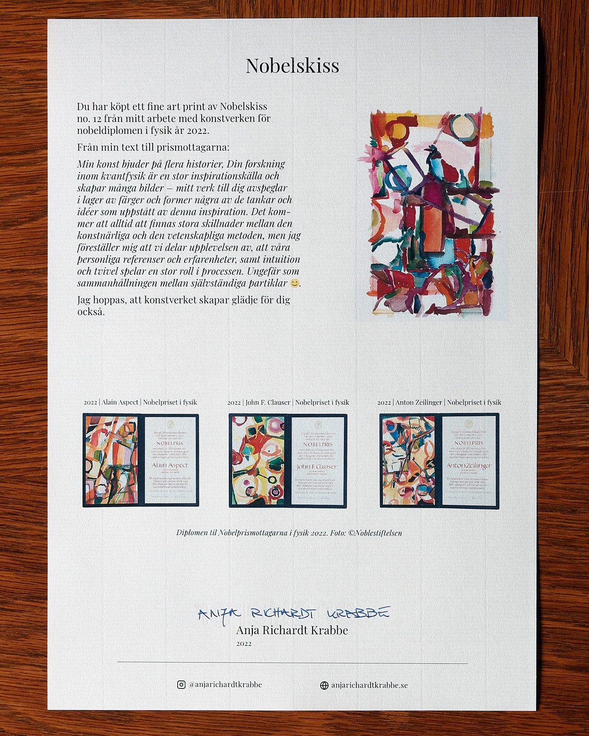 Fine art print av skiss från arbetet med konstverk till diplomen för nobelpristagarna i fysik 2022.