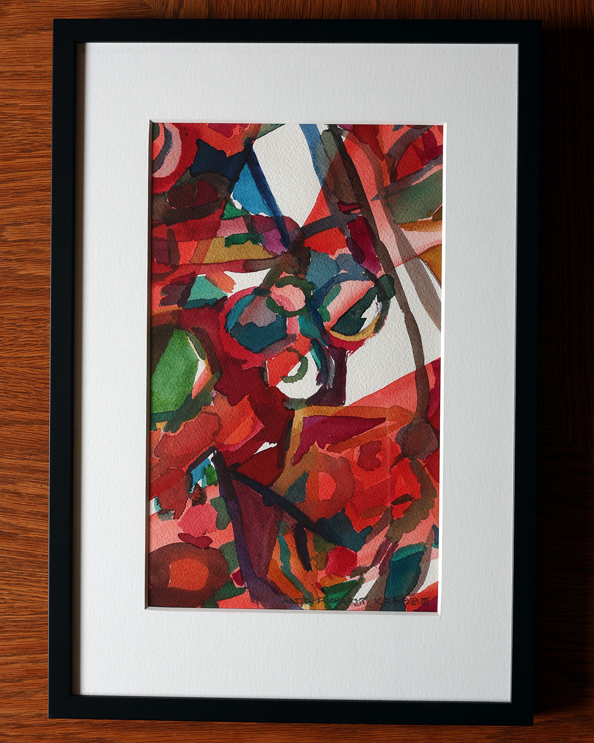 Original skitse fra arbejdet med kunstværk til Nobel diplomet 2022, indrammet i sort ramme med passepartout. Format 19,4x33cm (29,7×42 cm med passepartout).