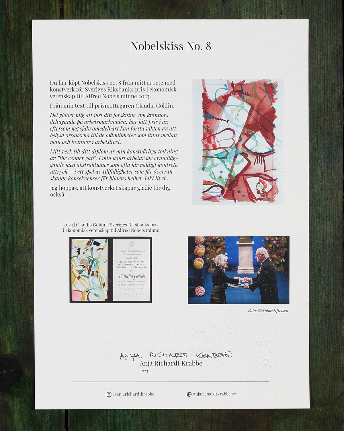 Original skiss från arbetet med konstverk till diplomet för nobelpristagaren i ekonomi 2023, Claudia Goldin.