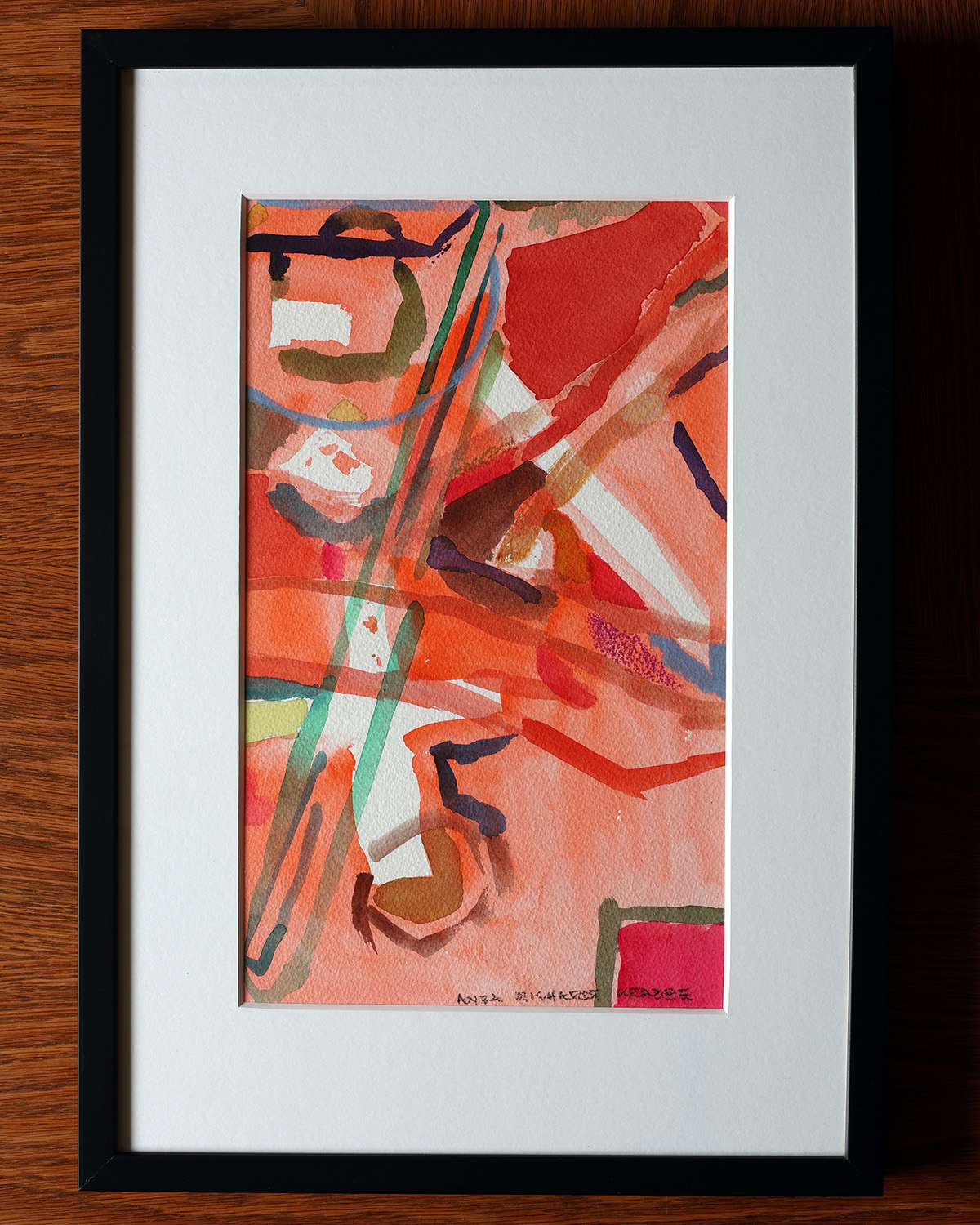 Original skitse fra arbejdet med kunstværk til Nobel diplomet 2022, indrammet i sort ramme med passepartout. Format 19,4x33cm (29,7×42 cm med passepartout).